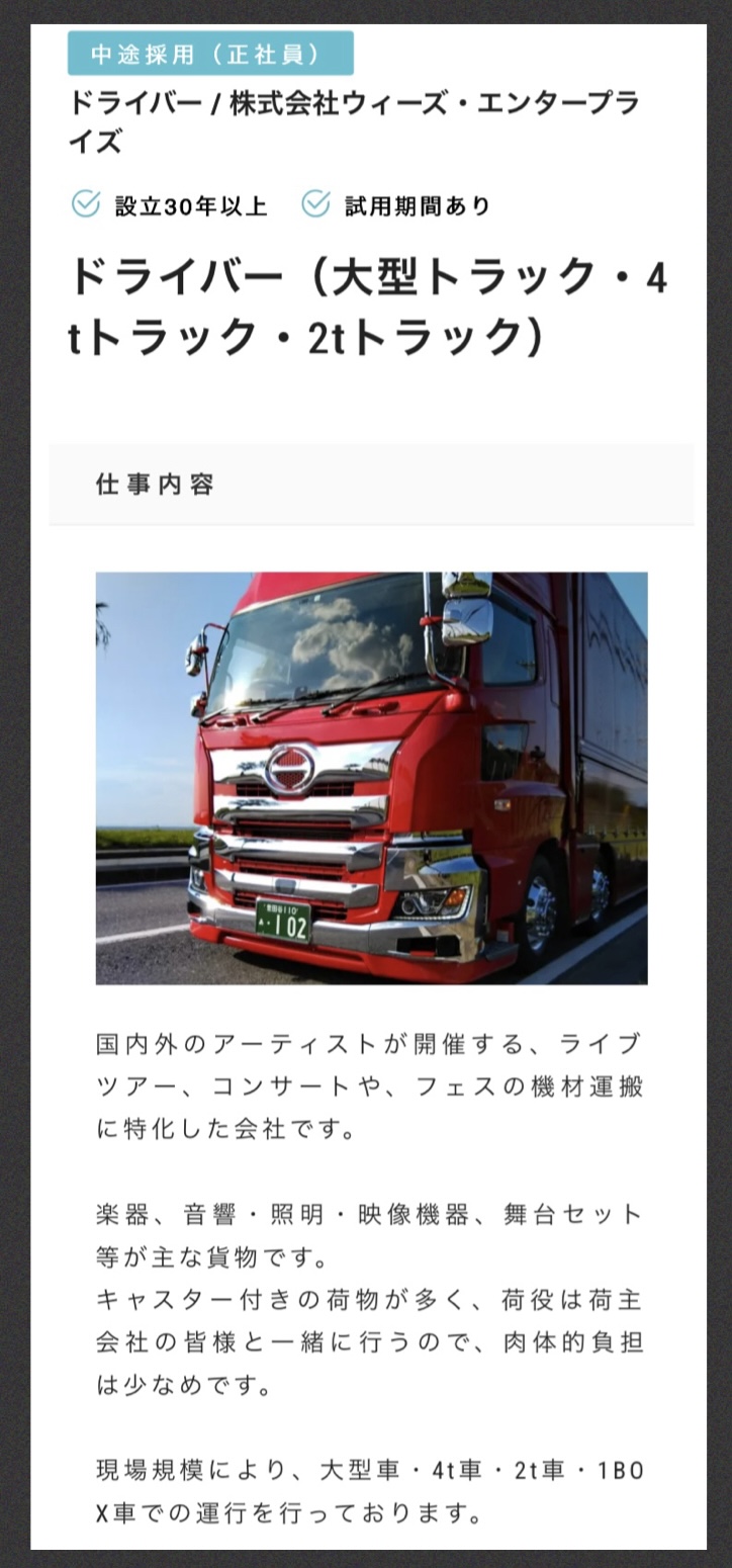 現在ドライバーを募集しています